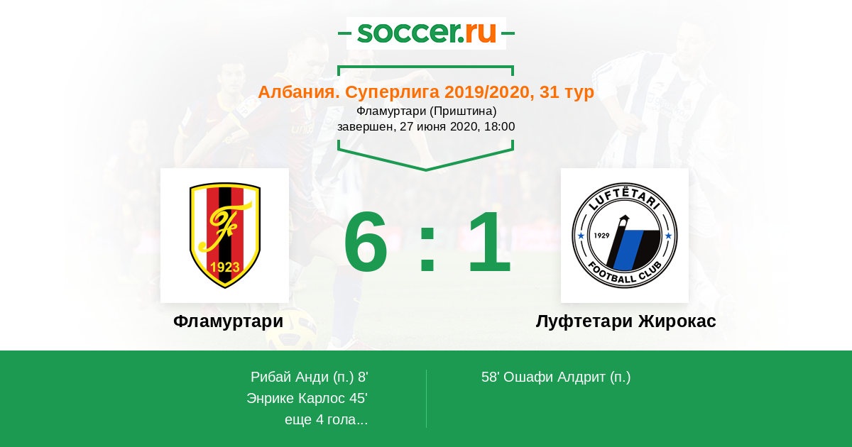 Албания. Суперлига 11.09.2016 Фламуртари Логотип футбольный клуб Фламуртари (Влера) 5:0 Логотип футбольный клуб Луфтетари Жирокас (Жирокастер) Луфтетари Жирокас