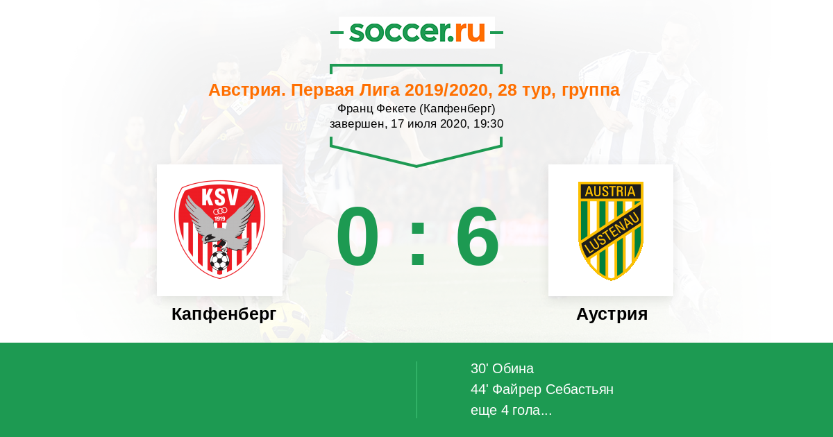 Австрия. Первая Лига 13.10.2017 Капфенберг Логотип футбольный клуб Капфенберг 0:1 Логотип футбольный клуб Аустрия (Лустенау) Аустрия
