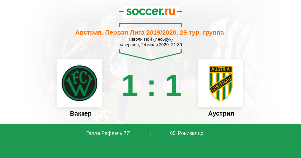 Австрия. Первая Лига 29.09.2020 Ваккер Логотип футбольный клуб Ваккер (Инсбрук) 0:0 Логотип футбольный клуб Аустрия (Лустенау) Аустрия