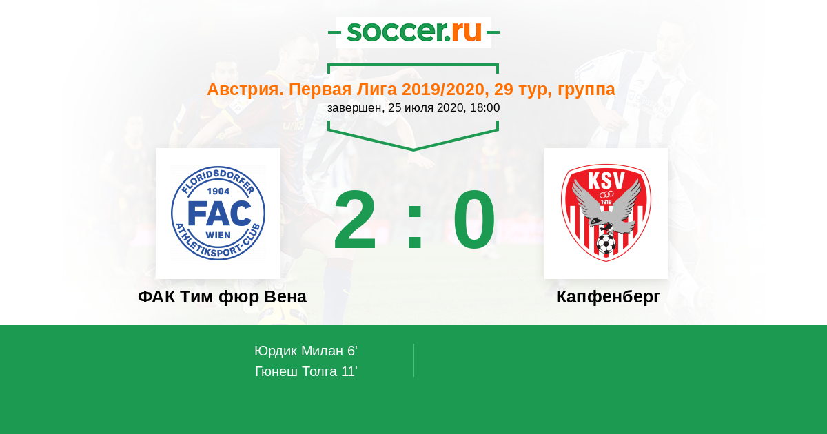 Австрия. Первая Лига 01.11.2019 Капфенберг Логотип футбольный клуб Капфенберг 2:1 Логотип футбольный клуб ФАК Тим фюр Вена ФАК Тим фюр Вена