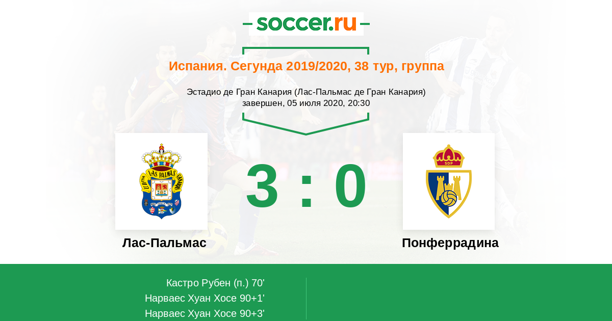 Испания. Сегунда 07.06.2014 Лас-Пальмас Логотип футбольный клуб Лас-Пальмас 3:2 Логотип футбольный клуб Понферрадина Понферрадина