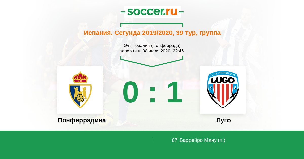 Испания. Сегунда 18.09.2019 Луго Логотип футбольный клуб Луго 2:2 Логотип футбольный клуб Понферрадина Понферрадина