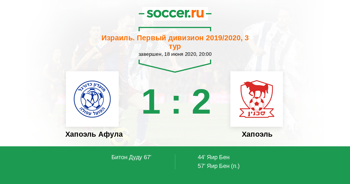 Израиль. Первый дивизион 28.07.2020 Хапоэль Афула Логотип футбольный клуб Хапоэль Афула 3:1 Логотип Хапоэль (Бней Лод) Хапоэль