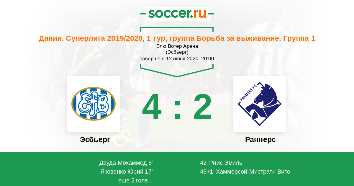 Дания. Суперлига 08.07.2020 Раннерс Логотип футбольный клуб Раннерс 3:1 Логотип футбольный клуб Эсбьерг Эсбьерг