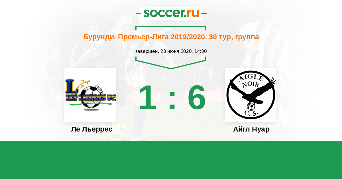 Бурунди. Премьер-лига 23.06.2020 Ле Льеррес Логотип футбольный клуб Ле Льеррес (Бужумбура) 1:6 Логотип футбольный клуб Айгл Нуар (Макамба) Айгл Нуар