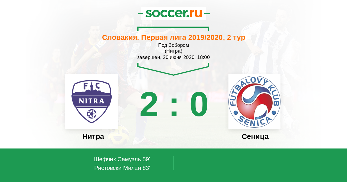 Словакия. Суперлига 29.08.2020 Сеница Логотип футбольный клуб Сеница 0:0 Логотип футбольный клуб Нитра Нитра