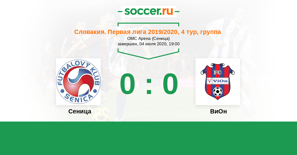 Словакия. Суперлига 04.08.2018 ВиОн Логотип футбольный клуб ВиОн (Злате-Моравце) 4:0 Логотип футбольный клуб Сеница Сеница