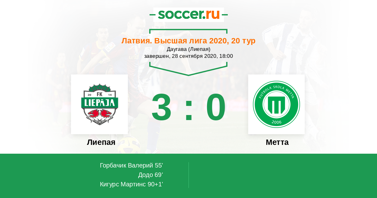 Латвия. Высшая лига 21.06.2020 Лиепая Логотип футбольный клуб Лиепая 3:0 Логотип футбольный клуб Метта (Рига) Метта