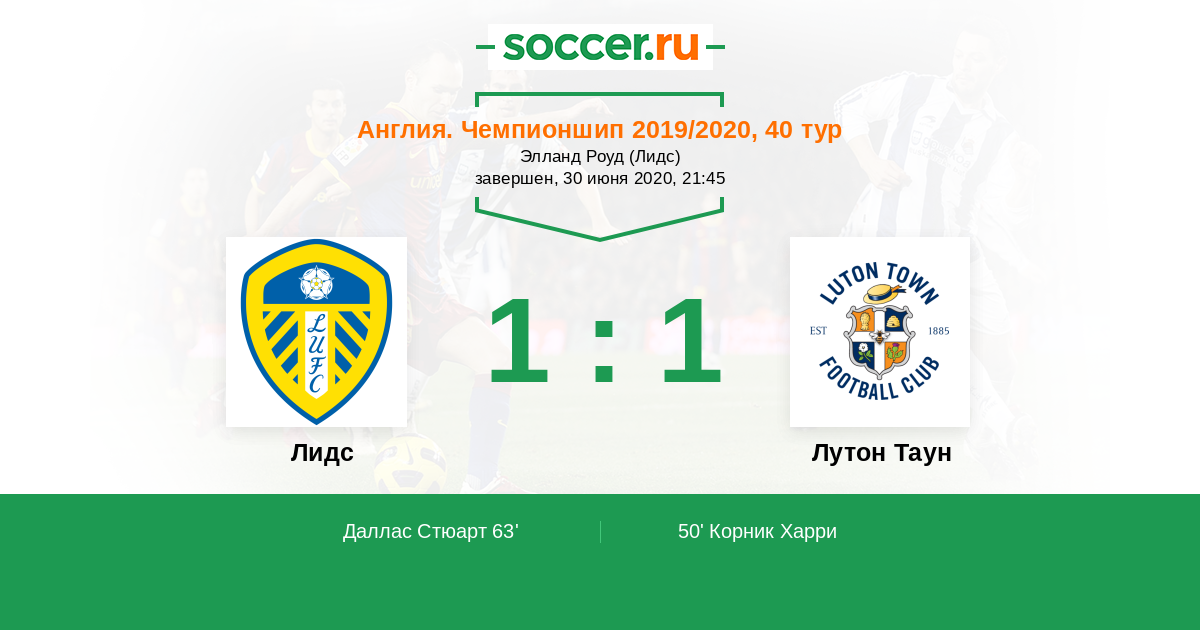 Англия. Чемпионшип 23.11.2019 Лутон Таун Логотип футбольный клуб Лутон Таун 1:2 Логотип футбольный клуб Лидс Лидс