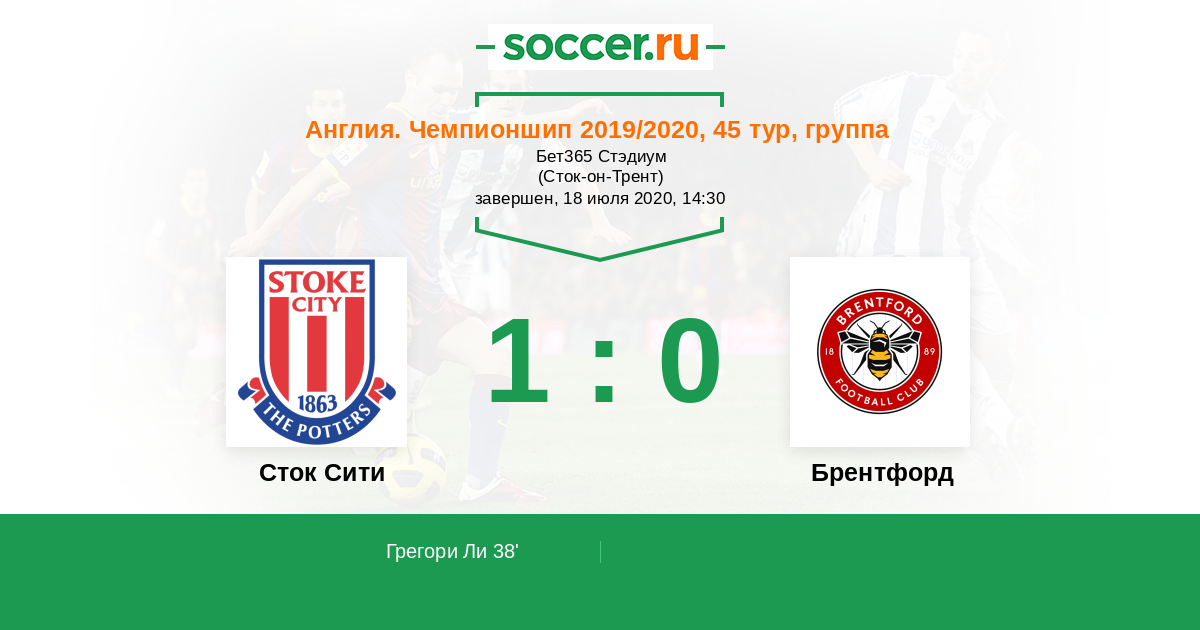Англия. Чемпионшип 21.09.2019 Брентфорд Логотип футбольный клуб Брентфорд (Лондон) 0:0 Логотип футбольный клуб Сток Сити (Сток-он-Трент) Сток Сити