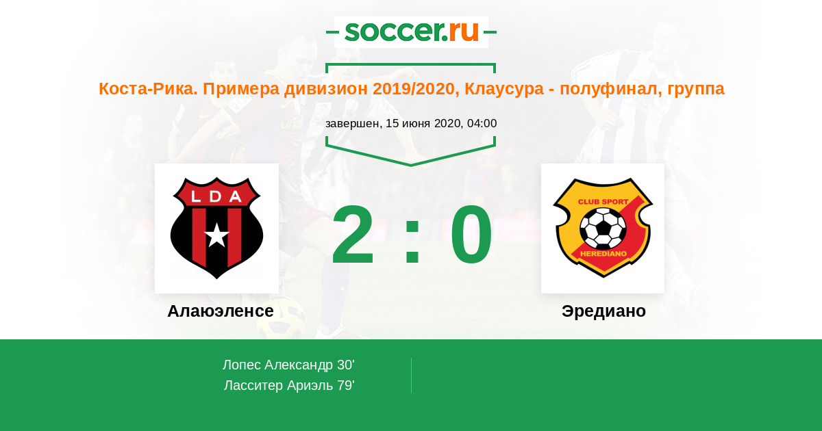 Коста-Рика. Примера дивизион 27.09.2020 Алаюэленсе Логотип футбольный клуб Алаюэленсе (Алаюэла) 2:0 Логотип футбольный клуб Эредиано Эредиано