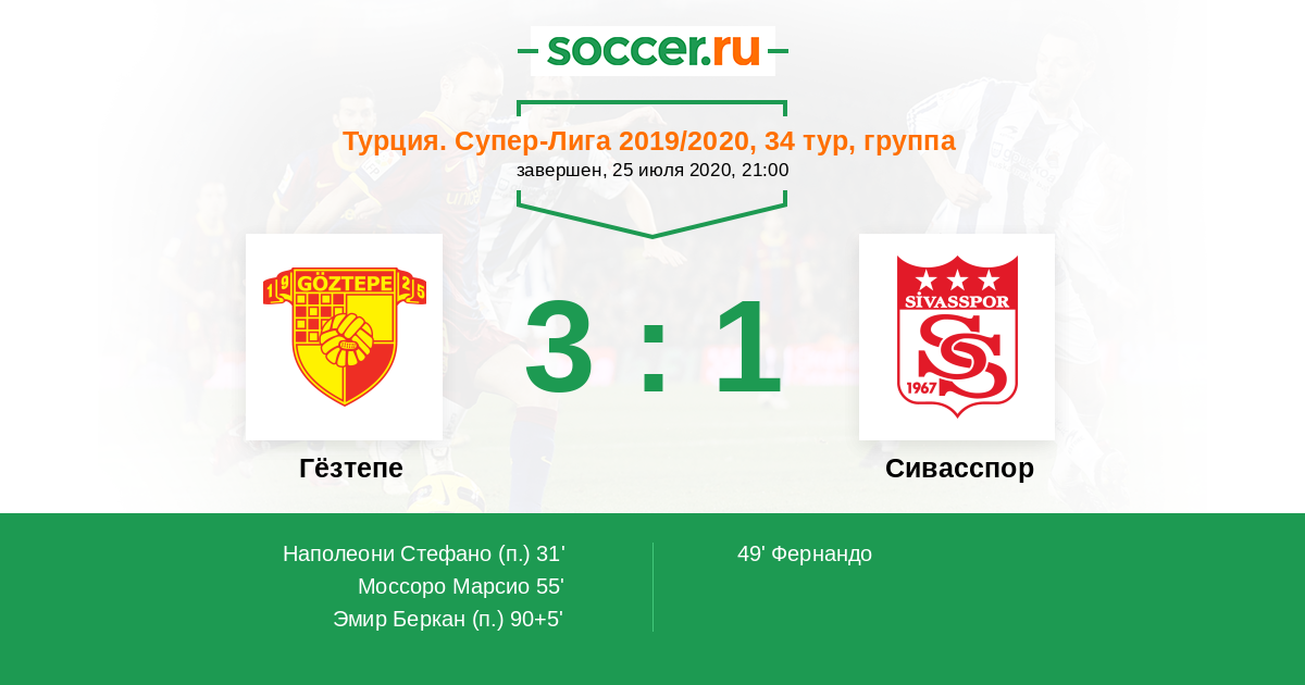 Турция. Суперлига 20.03.2021 Гёзтепе Логотип футбольный клуб Гёзтепе (Измир) 3:5 Логотип футбольный клуб Сивасспор Сивасспор