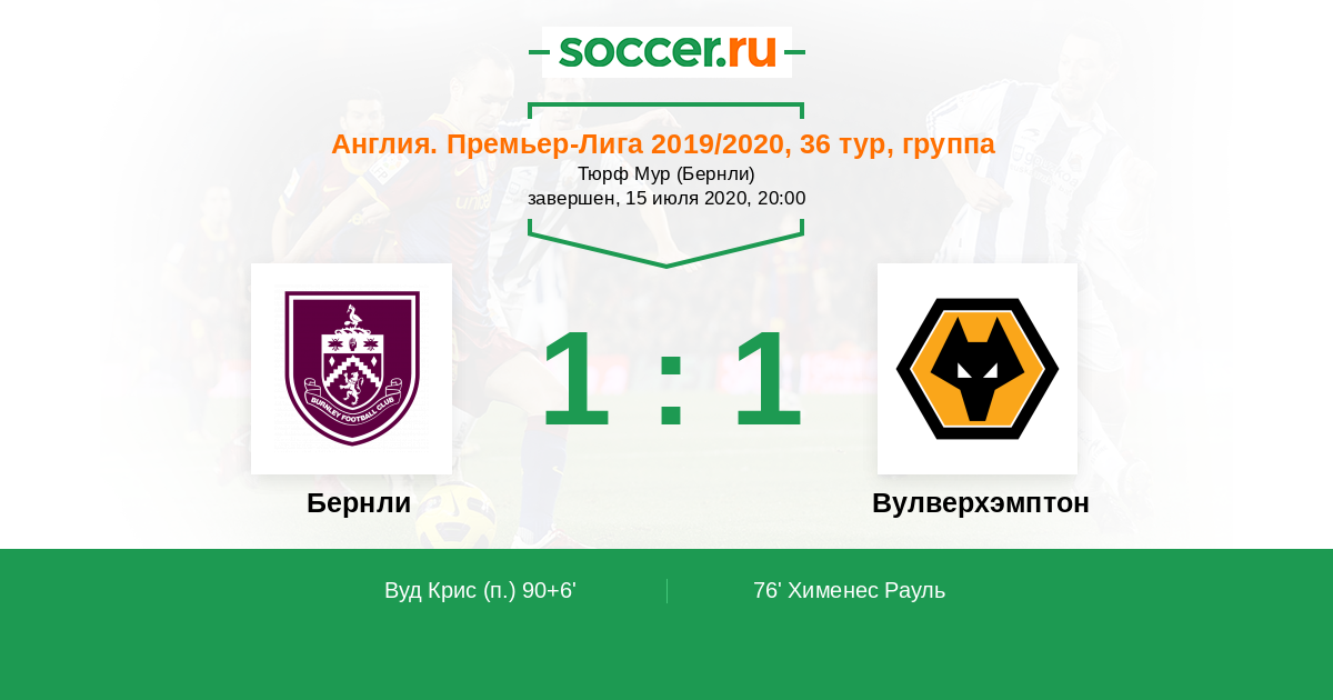 Англия. Премьер-Лига 25.08.2019 Вулверхэмптон Логотип футбольный клуб Вулверхэмптон 1:1 Логотип футбольный клуб Бернли Бернли