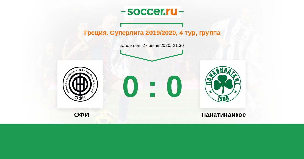 Греция. Суперлига 19.07.2020 Панатинаикос Логотип футбольный клуб Панатинаикос (Афины) 3:2 Логотип футбольный клуб ОФИ (Ираклион) ОФИ