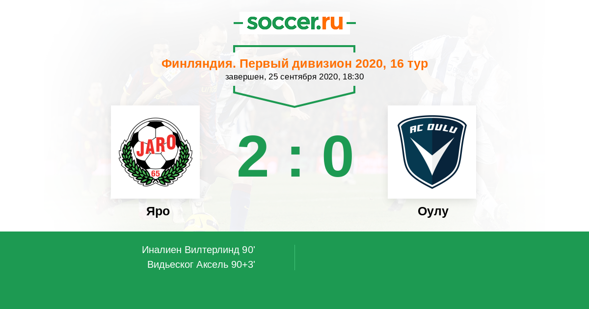 Финляндия. Первый дивизион 01.08.2020 Оулу Логотип футбольный клуб Оулу 2:1 Логотип футбольный клуб Яро (Якобстад) Яро
