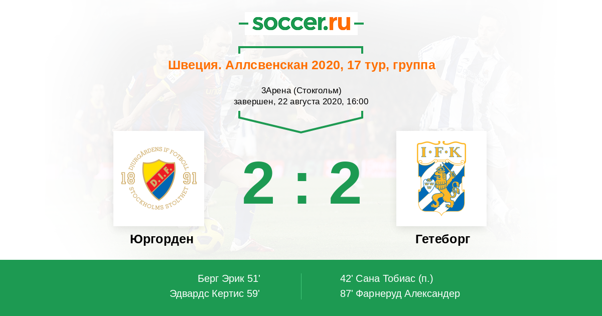 Швеция. Аллсвенскан 12.07.2020 Гетеборг Логотип футбольный клуб Гетеборг 1:2 Логотип футбольный клуб Юргорден (Стокгольм) Юргорден
