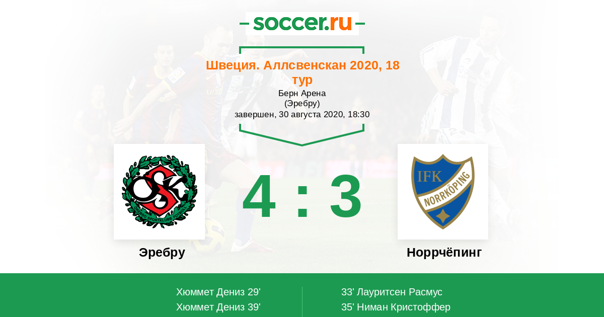 Швеция. Аллсвенскан 16.07.2020 Норрчёпинг Логотип футбольный клуб Норрчёпинг 2:0 Логотип футбольный клуб Эребру Эребру
