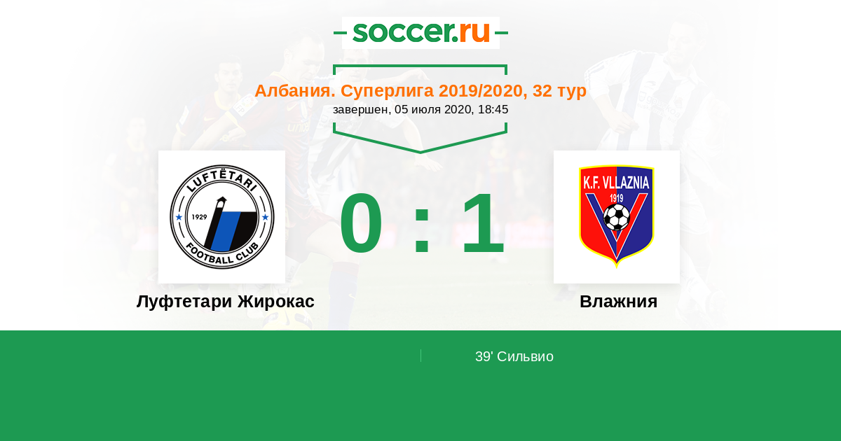 Албания. Суперлига 22.02.2020 Влажния Логотип футбольный клуб Влажния (Шкодер) 4:0 Логотип футбольный клуб Луфтетари Жирокас (Жирокастер) Луфтетари Жирокас