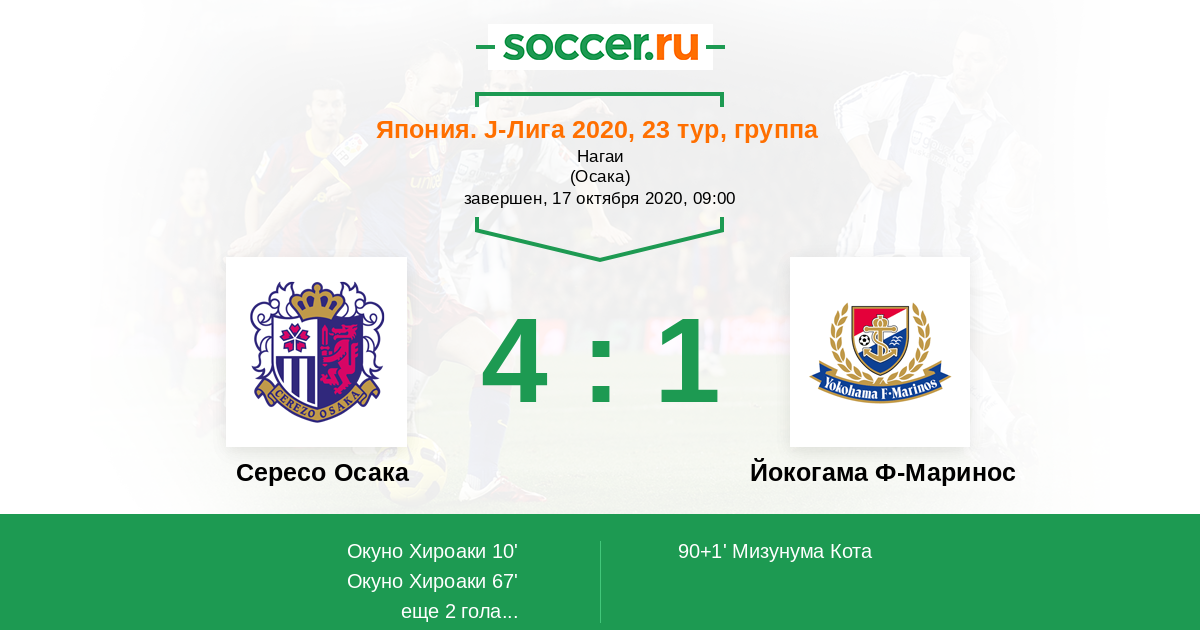 Япония. J-Лига 1 24.10.2021 Сересо Осака Логотип футбольный клуб Сересо Осака 2:1 Логотип футбольный клуб Йокогама Ф-Маринос Йокогама Ф-Маринос