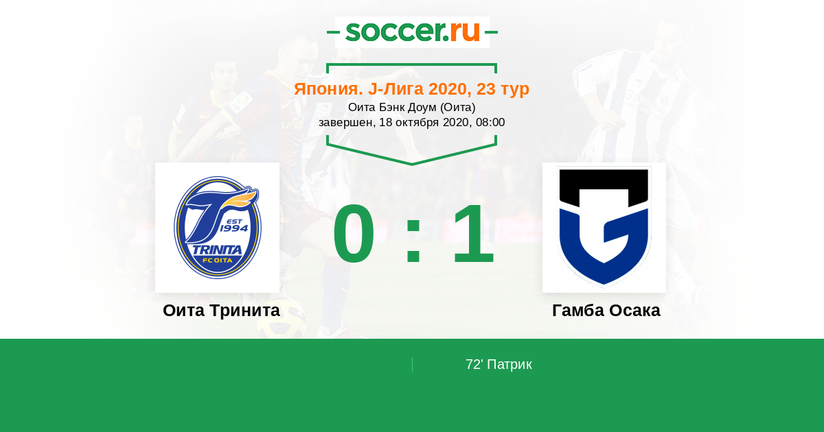 Япония. J-Лига 1 18.07.2020 Гамба Осака Логотип футбольный клуб Гамба Осака 2:1 Логотип футбольный клуб Оита Тринита Оита Тринита
