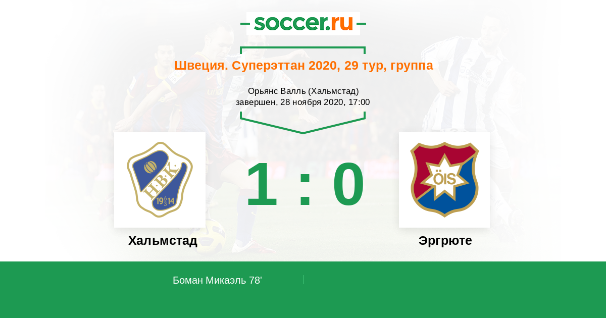 Швеция. Суперэттан 11.10.2022 Хальмстад Логотип футбольный клуб Хальмстад 2:3 Логотип футбольный клуб Эргрюте (Гетеборг) Эргрюте