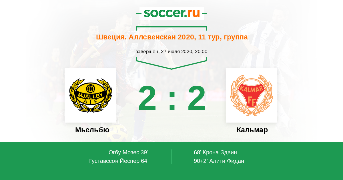Швеция. Аллсвенскан 24.08.2020 Кальмар Логотип футбольный клуб Кальмар 1:4 Логотип футбольный клуб Мьельбю (Сельвесборг) Мьельбю