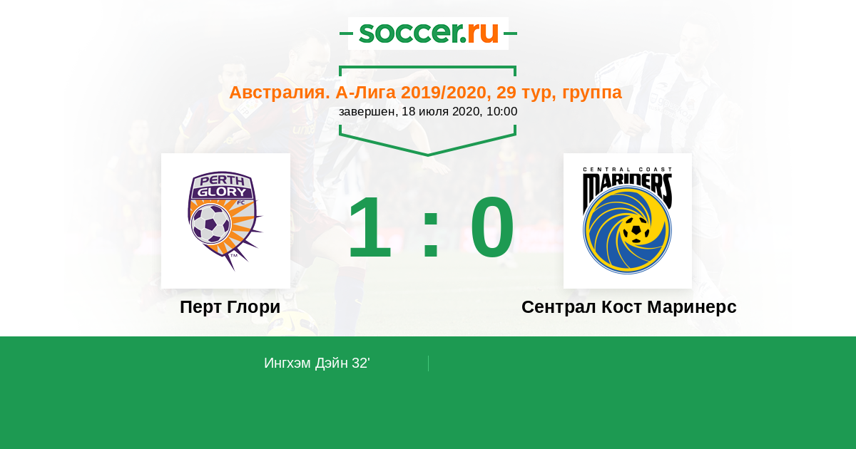 Австралия. А-Лига 03.11.2019 Перт Глори Логотип футбольный клуб Перт Глори 1:2 Логотип футбольный клуб Сентрал Кост Маринерс Сентрал Кост Маринерс