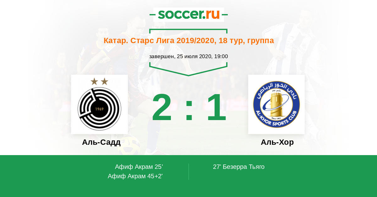 Катар. Старс Лига 24.02.2017 Аль-Хор Логотип футбольный клуб Аль-Хор 0:4 Логотип футбольный клуб Аль-Садд (Доха) Аль-Садд
