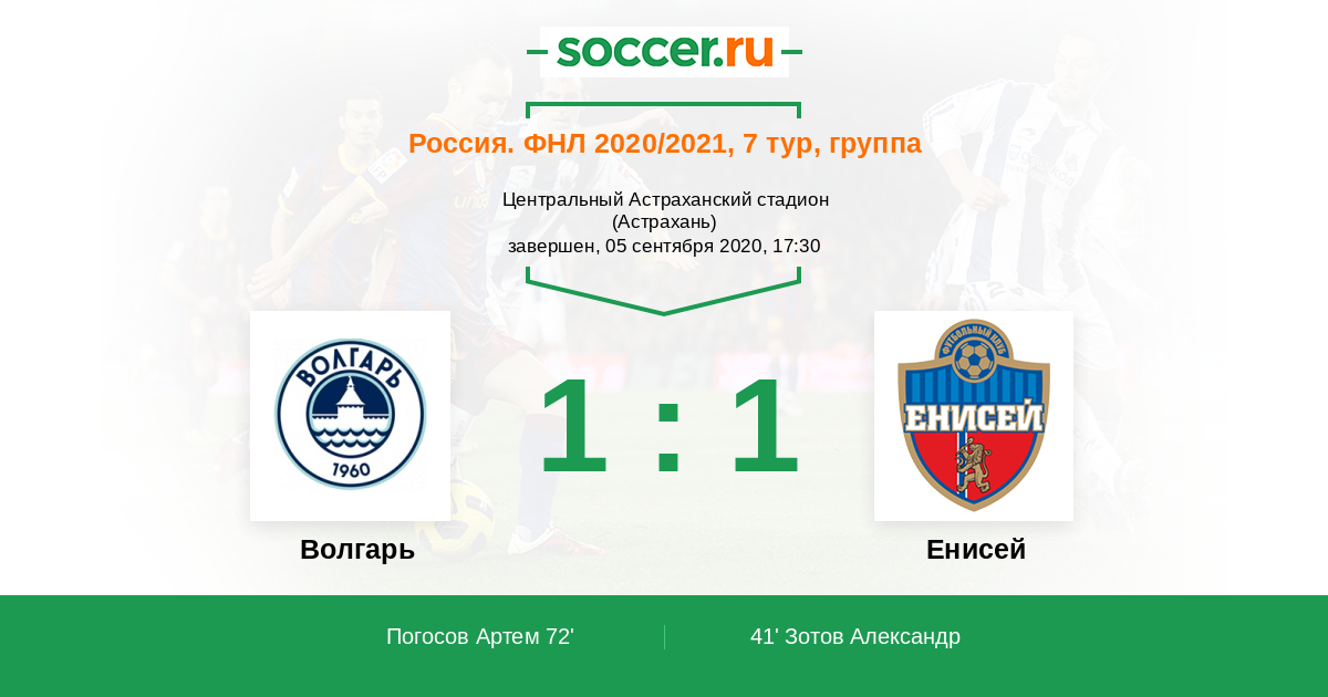 Россия. Первая лига 13.09.2014 Волгарь Логотип футбольный клуб Волгарь (Астрахань) 0:0 Логотип футбольный клуб Енисей (Красноярск) Енисей