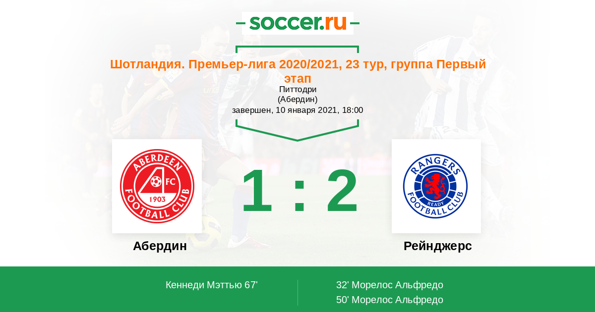 Шотландия. Премьер-Лига 05.03.2022 Рейнджерс Логотип футбольный клуб Рейнджерс (Глазго) 1:0 Логотип футбольный клуб Абердин Абердин