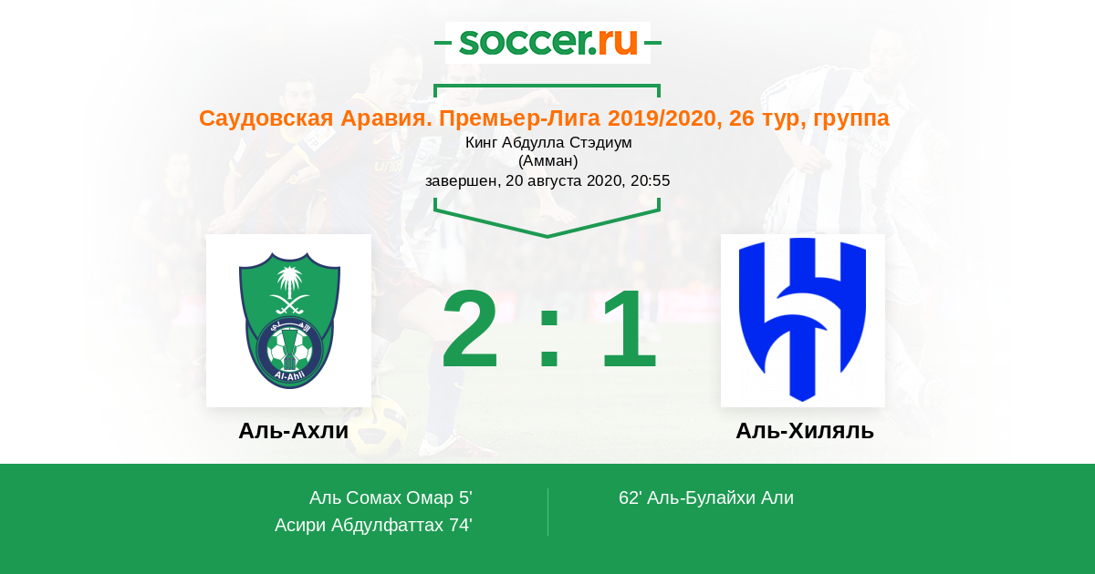 Саудовская Аравия. Премьер-Лига 19.05.2021 Аль-Хиляль Логотип футбольный клуб Аль-Хиляль (Эр-Рияд) 5:1 Логотип футбольный клуб Аль-Ахли (Джидда) Аль-Ахли
