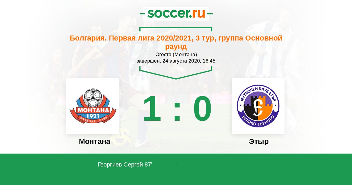 Болгария. Первая лига 12.08.2012 Монтана Логотип футбольный клуб Монтана 2:3 Логотип футбольный клуб Этыр (Велико-Тырново) Этыр