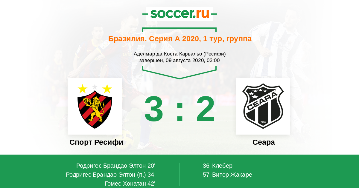 Бразилия. Серия А 19.07.2018 Сеара Логотип футбольный клуб Сеара (Форталеза) 1:0 Логотип футбольный клуб Спорт Ресифи Спорт Ресифи