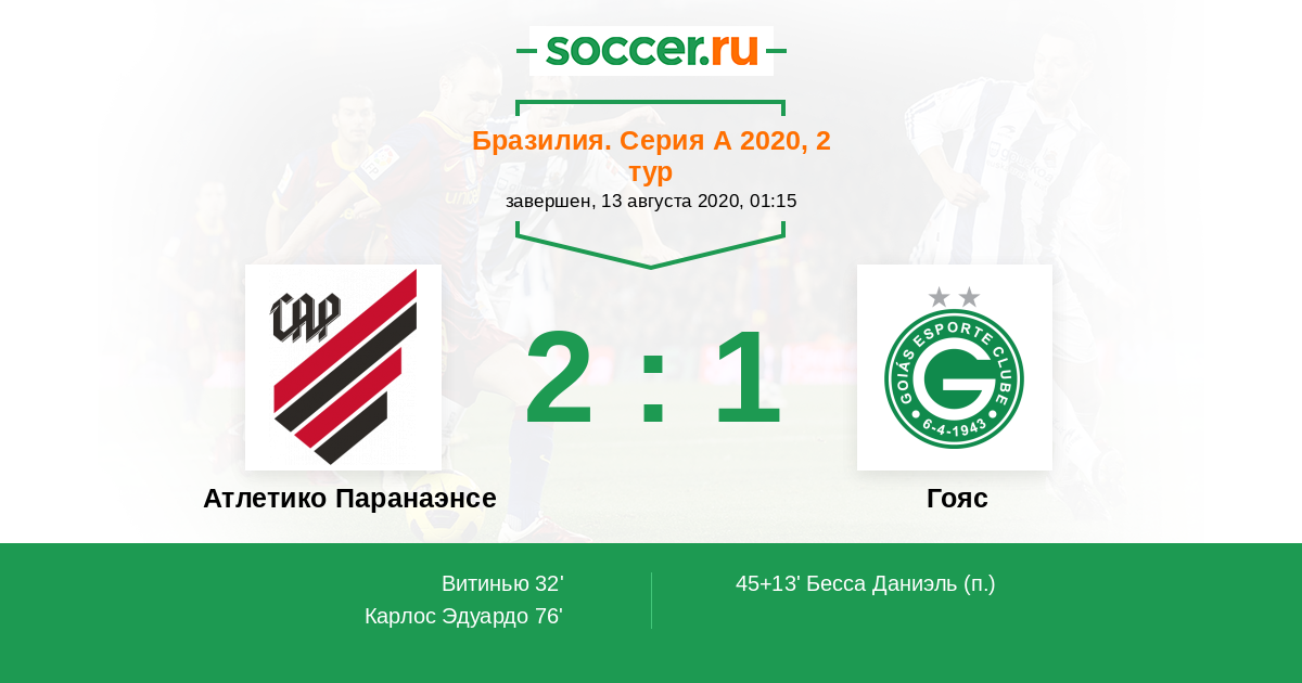 Бразилия. Серия А 14.06.2019 Гояс Логотип футбольный клуб Гояс (Гояния) 2:1 Логотип футбольный клуб Атлетико Паранаэнсе (Куритиба) Атлетико Паранаэнсе