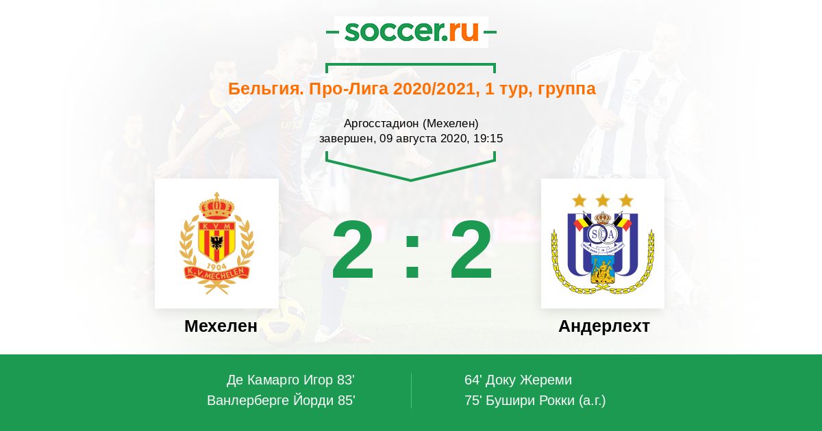 Бельгия. Про-Лига 12.09.2021 Андерлехт Логотип футбольный клуб Андерлехт (Брюссель) 7:2 Логотип футбольный клуб Мехелен Мехелен