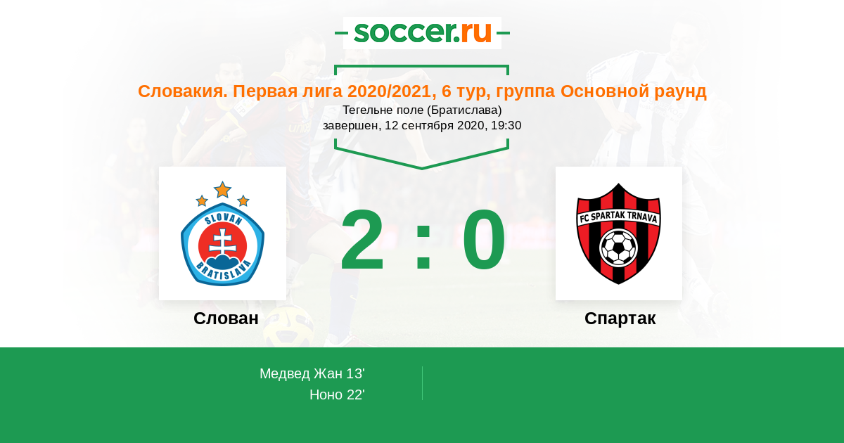 Словакия. Суперлига 15.09.2019 Слован Логотип футбольный клуб Слован (Братислава) 2:0 Логотип футбольный клуб Спартак (Трнава) Спартак