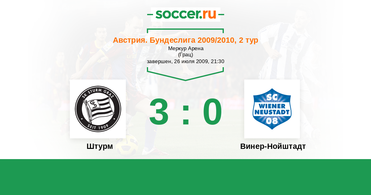 Австрия. Бундеслига 25.10.2009 Винер-Нойштадт Логотип футбольный клуб Винер-Нойштадт 0:0 Логотип футбольный клуб Штурм (Грац) Штурм