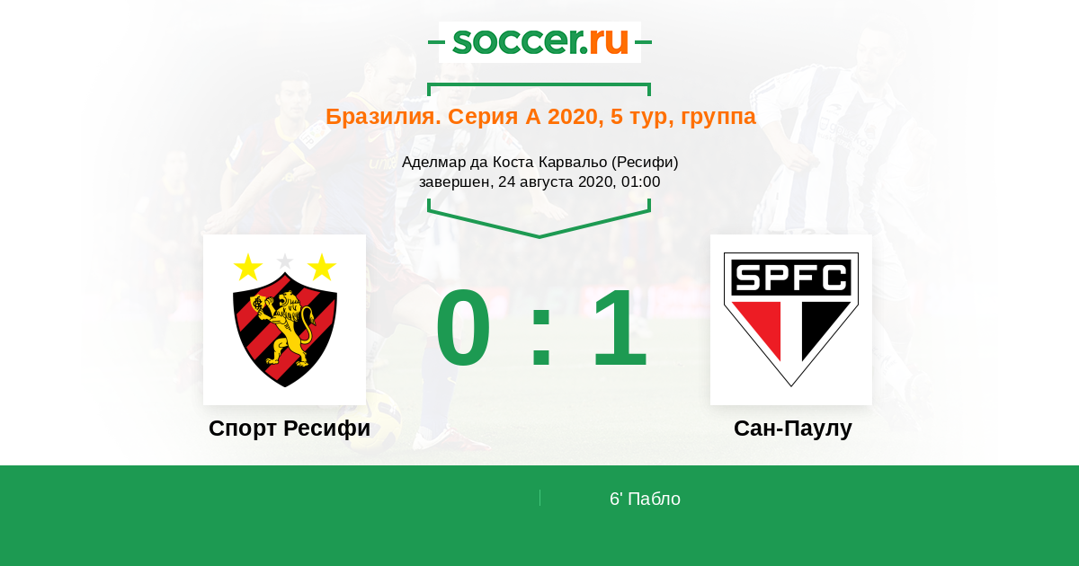 Бразилия. Серия А 23.08.2021 Спорт Ресифи Логотип футбольный клуб Спорт Ресифи 0:1 Логотип футбольный клуб Сан-Паулу Сан-Паулу