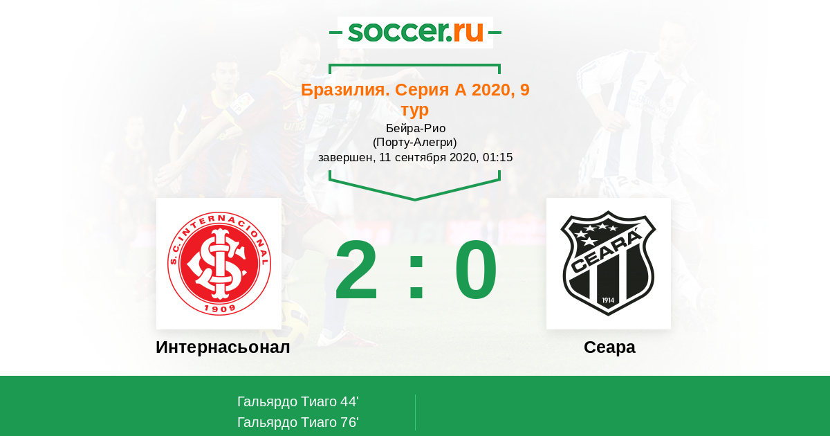 Бразилия. Серия А 08.01.2021 Сеара Логотип футбольный клуб Сеара (Форталеза) 0:2 Логотип футбольный клуб Интернасьонал (Порту-Алегри) Интернасьонал