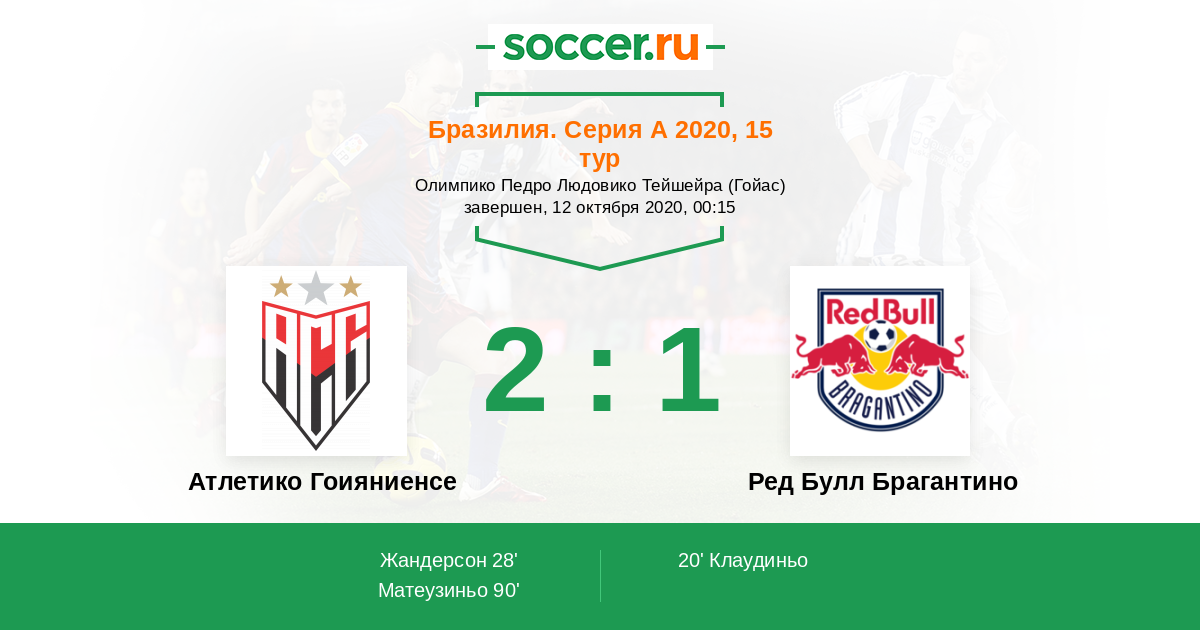 Бразилия. Серия В 14.09.2019 Атлетико Гоияниенсе Логотип футбольный клуб Атлетико Гоияниенсе (Гояния) 1:1 Логотип футбольный клуб Ред Булл Брагантино (Браганса-Паулиста) Ред Булл Брагантино