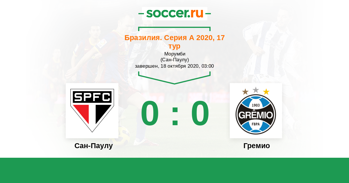 Бразилия. Серия А 17.10.2025 Гремио Логотип футбольный клуб Гремио (Порту-Алегри) 2:0 Логотип футбольный клуб Сан-Паулу Сан-Паулу