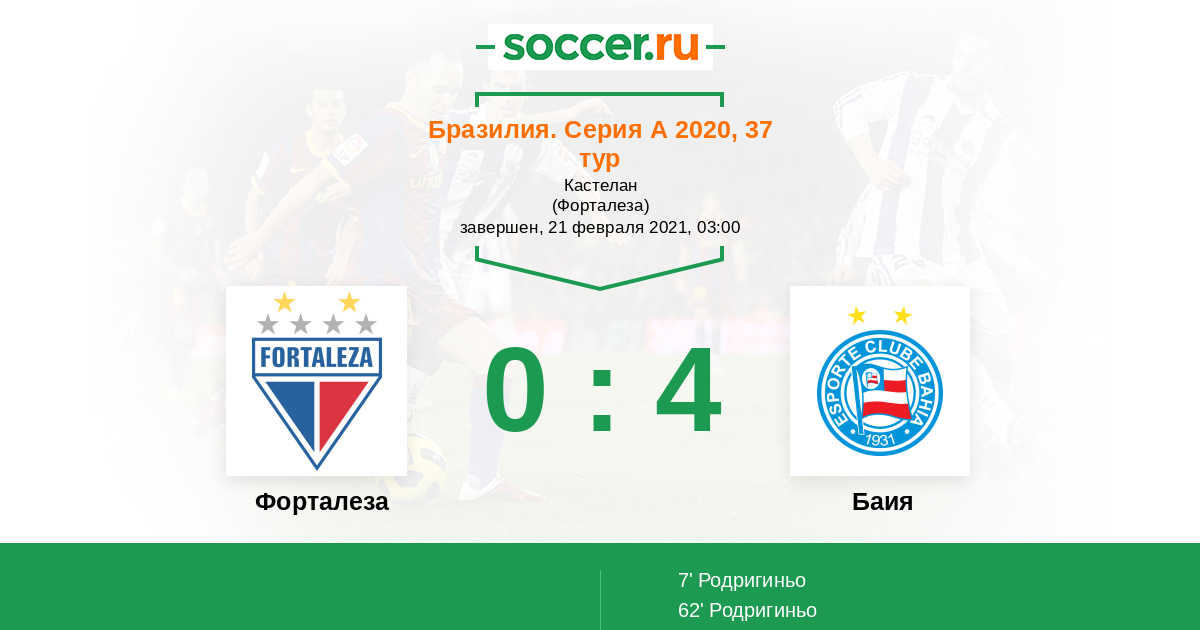 Бразилия. Серия А 12.11.2020 Баия Логотип футбольный клуб Баия (Салвадор) 2:1 Логотип футбольный клуб Форталеза Форталеза