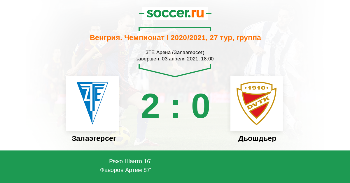 Венгрия. Чемпионат 1 26.09.2020 Залаэгерсег Логотип футбольный клуб Залаэгерсег 3:1 Логотип футбольный клуб Дьошдьер (Мишкольц) Дьошдьер