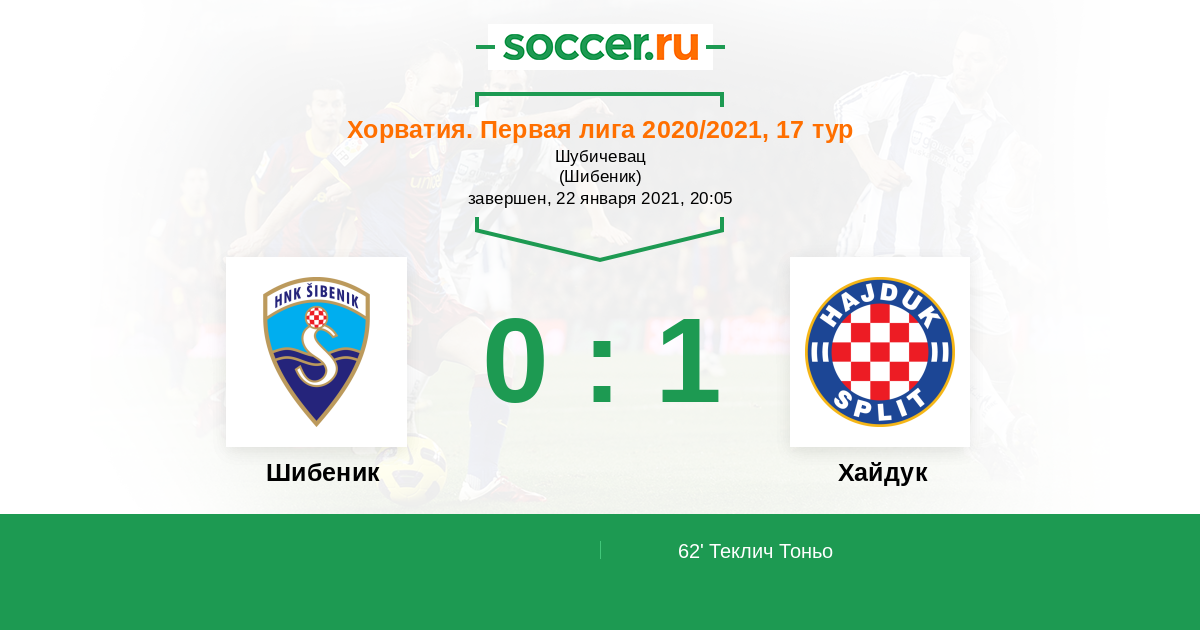 Хорватия. Первая лига 20.03.2021 Хайдук Логотип футбольный клуб Хайдук (Сплит) 1:0 Логотип футбольный клуб Шибеник Шибеник