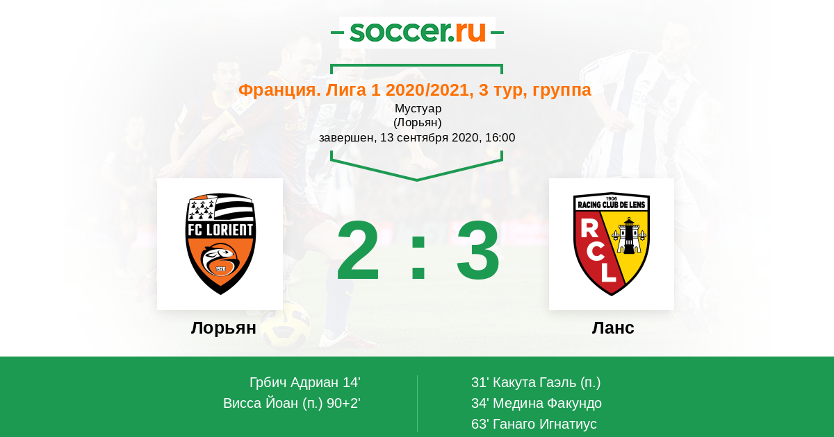 Франция. Лига 2 09.09.2017 Ланс Логотип футбольный клуб Ланс 2:3 Логотип футбольный клуб Лорьян Лорьян
