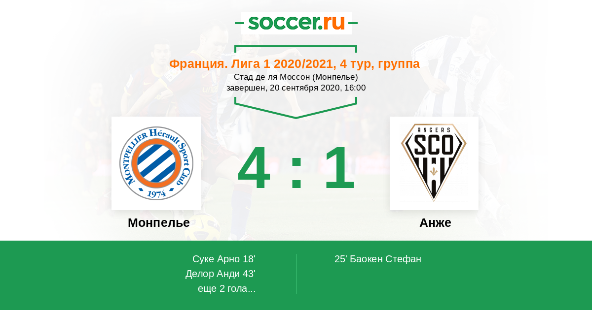 Франция. Лига 1 11.09.2022 Анже Логотип футбольный клуб Анже 2:1 Логотип футбольный клуб Монпелье Монпелье