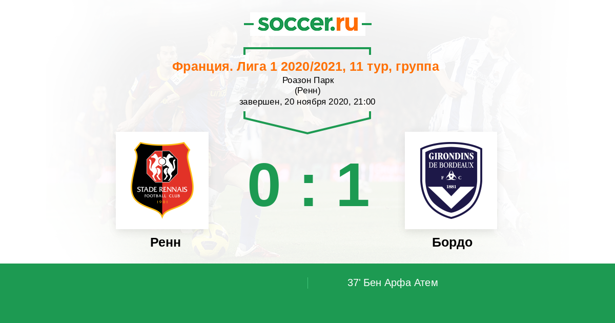 Франция. Лига 1 03.11.2017 Ренн Логотип футбольный клуб Ренн 1:0 Логотип футбольный клуб Бордо Бордо
