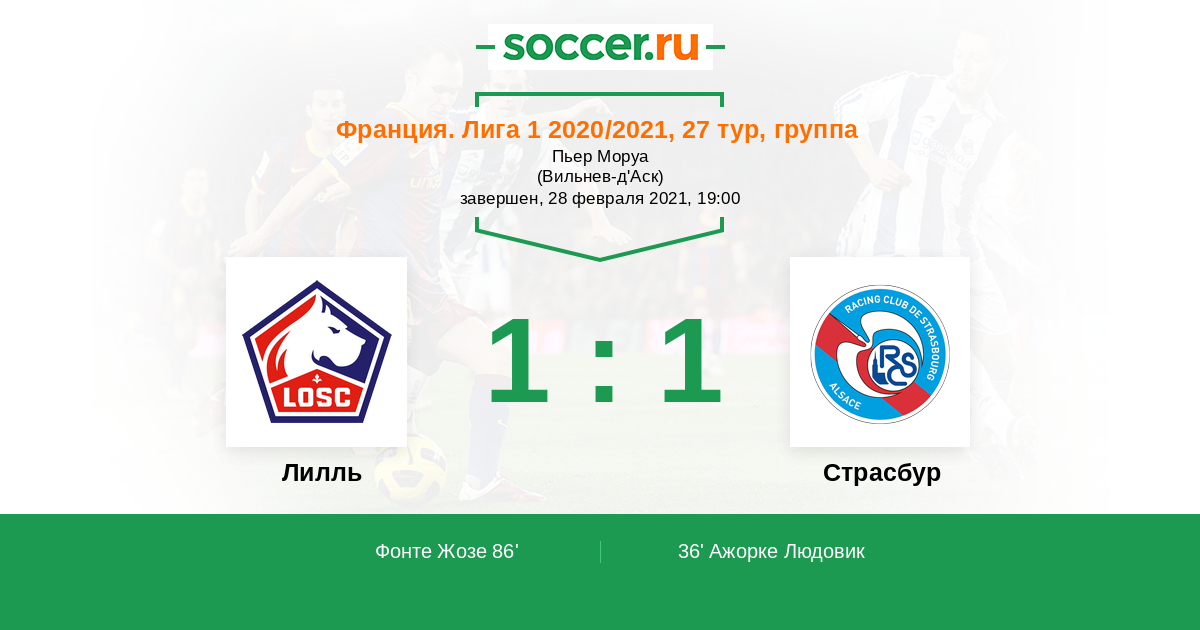 Франция. Лига 1 25.09.2021 Страсбур Логотип футбольный клуб Страсбур 1:2 Логотип футбольный клуб Лилль Лилль