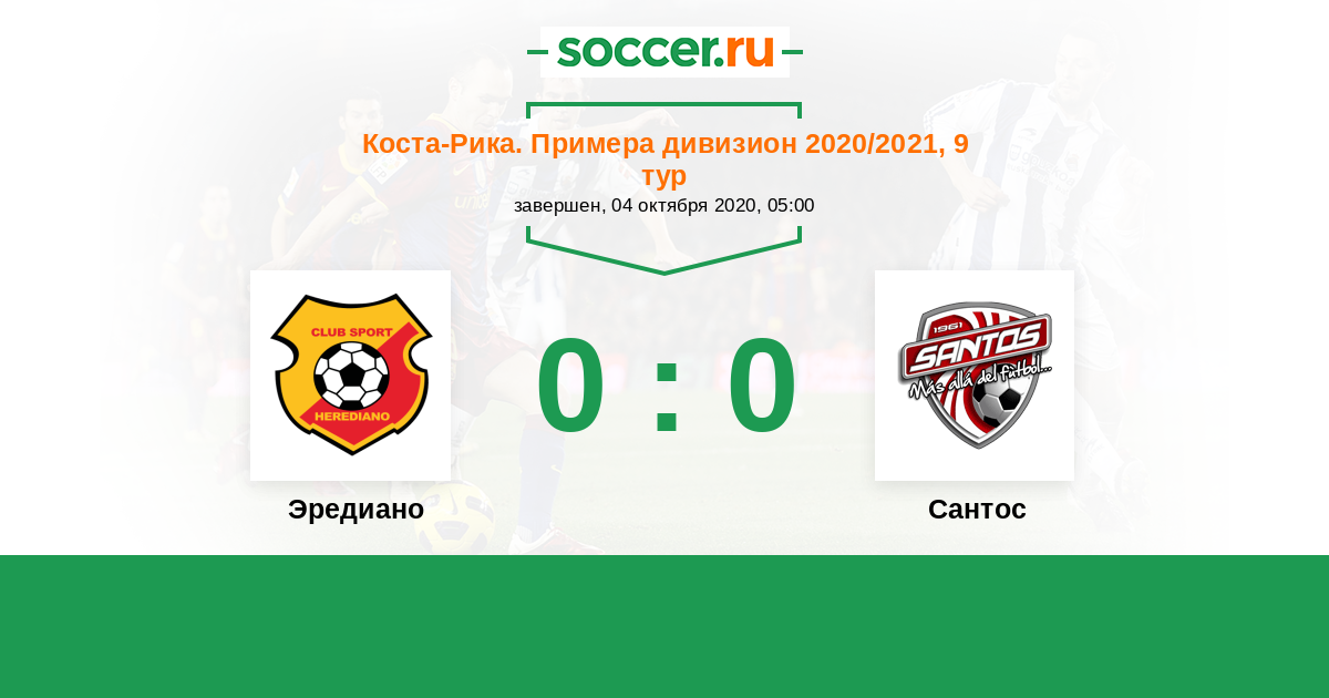 Коста-Рика. Примера дивизион 18.04.2022 Эредиано Логотип футбольный клуб Эредиано 3:0 Логотип футбольный клуб Сантос (Гуапилес) Сантос