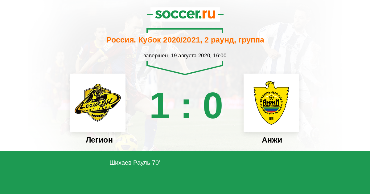 Россия. Кубок 12.08.2021 Легион Логотип футбольный клуб Легион (Махачкала) 2:0 Логотип футбольный клуб Анжи (Махачкала) Анжи